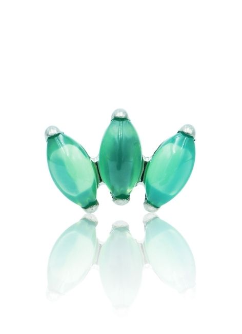 Kolczyk do ucha "3 stone green" - tytanowy labret w kształcie potrójnej łezki z zielonym onyksem