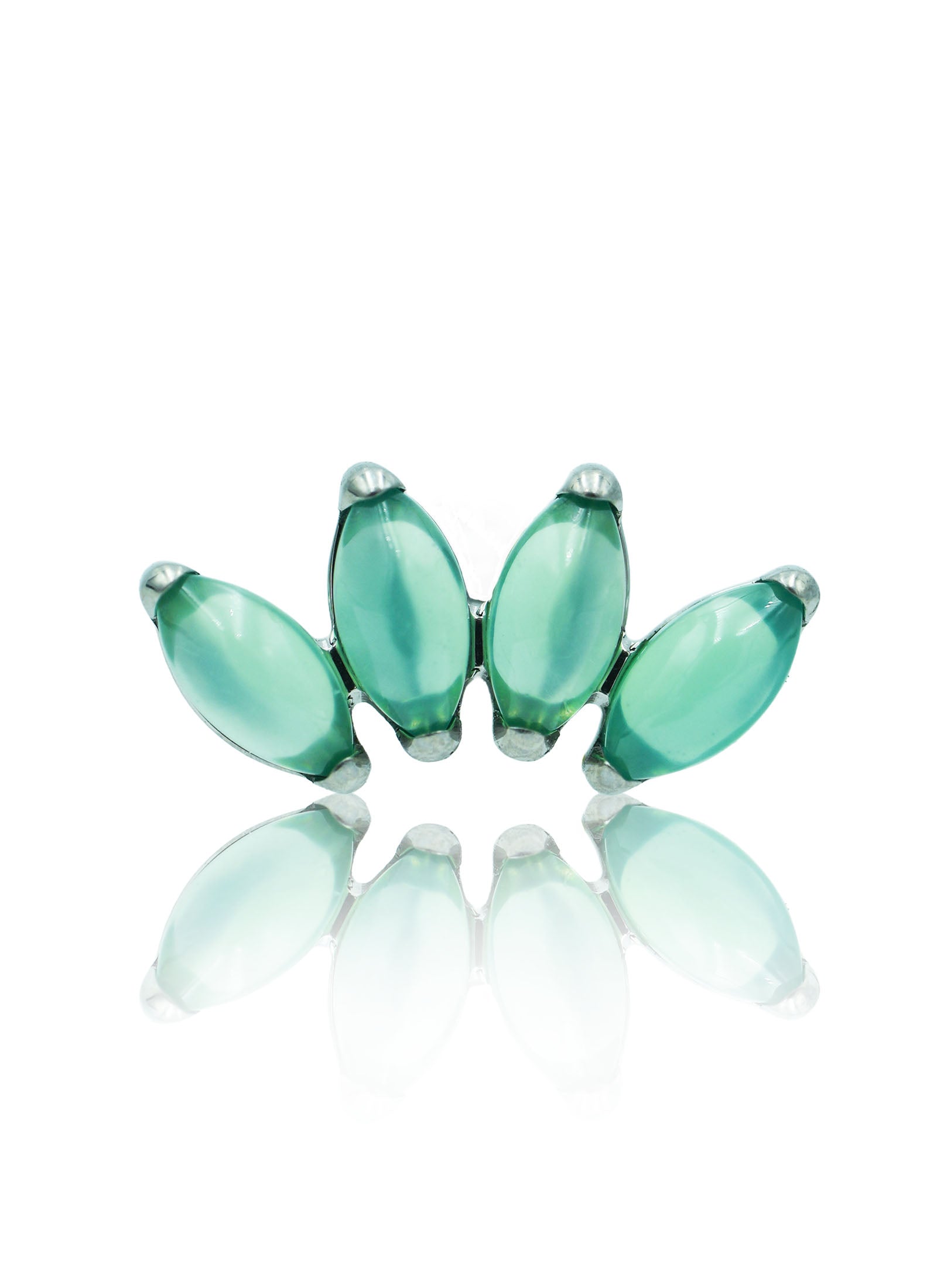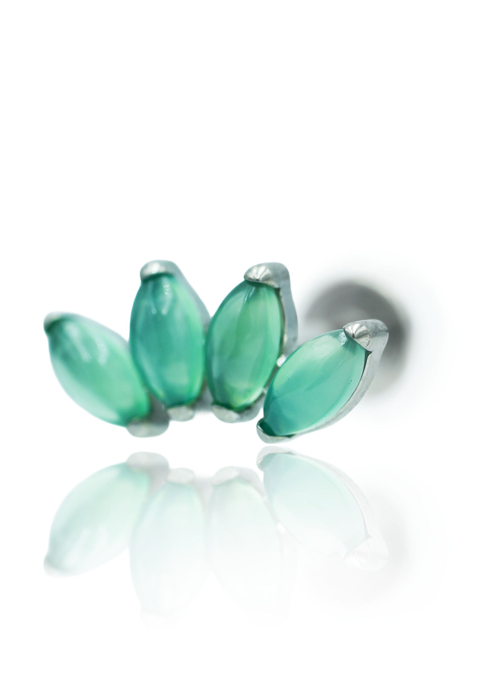 Kolczyk do ucha "4 stone green" - tytanowy labret w kształcie poczwórnej łezki z zielonym onyksem