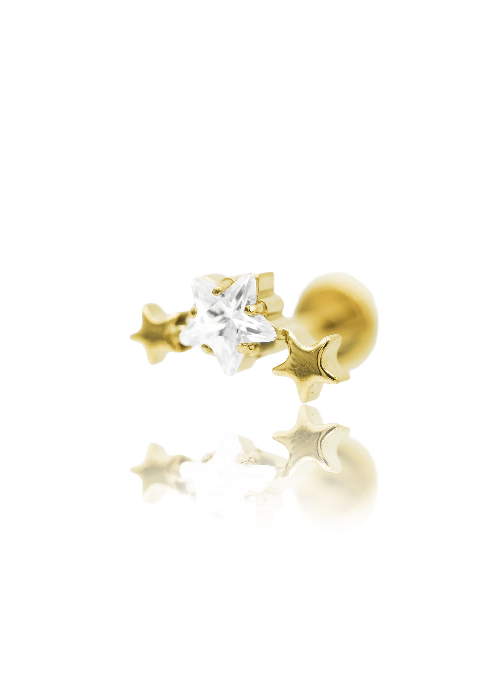 Kolczyk do ucha "Star trio" - złoty tytanowy labret z cyrkonią w kształcie gwiazdki