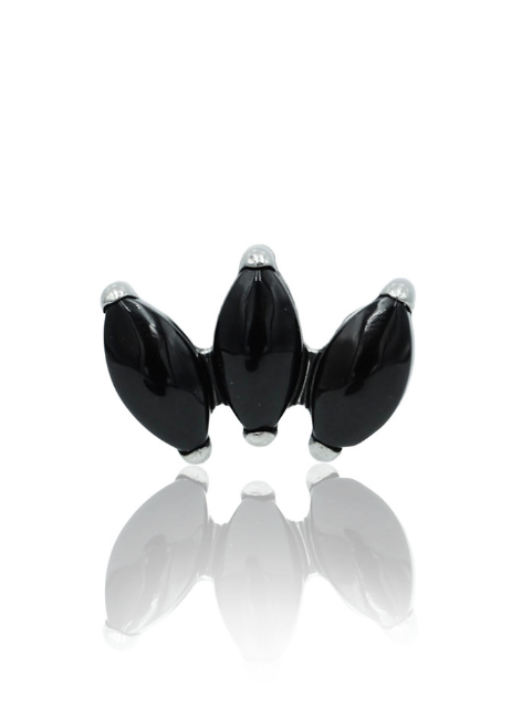 Kolczyk do ucha "3 stone black" - tytanowy labret w kształcie potrójnej łezki z czarnym onyksem