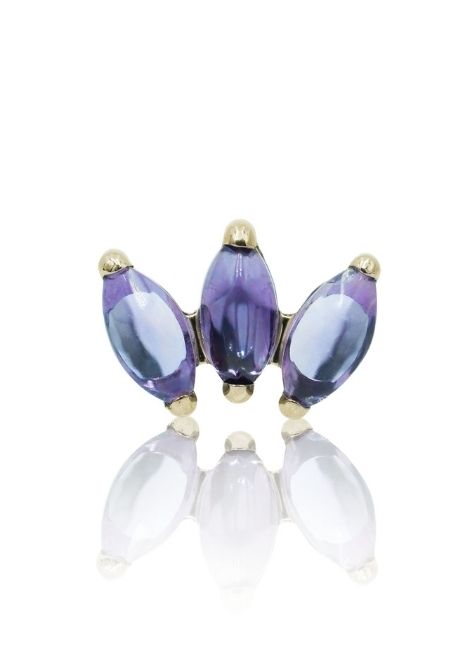 „3 stone purple” to tytanowy labret z potrójnym motywem łezki, wypełniony głębokim fioletem ametystu. To subtelny, a jednocześnie wyrazisty akcent — świetny, gdy chcesz dodać koloru bez przesady.
