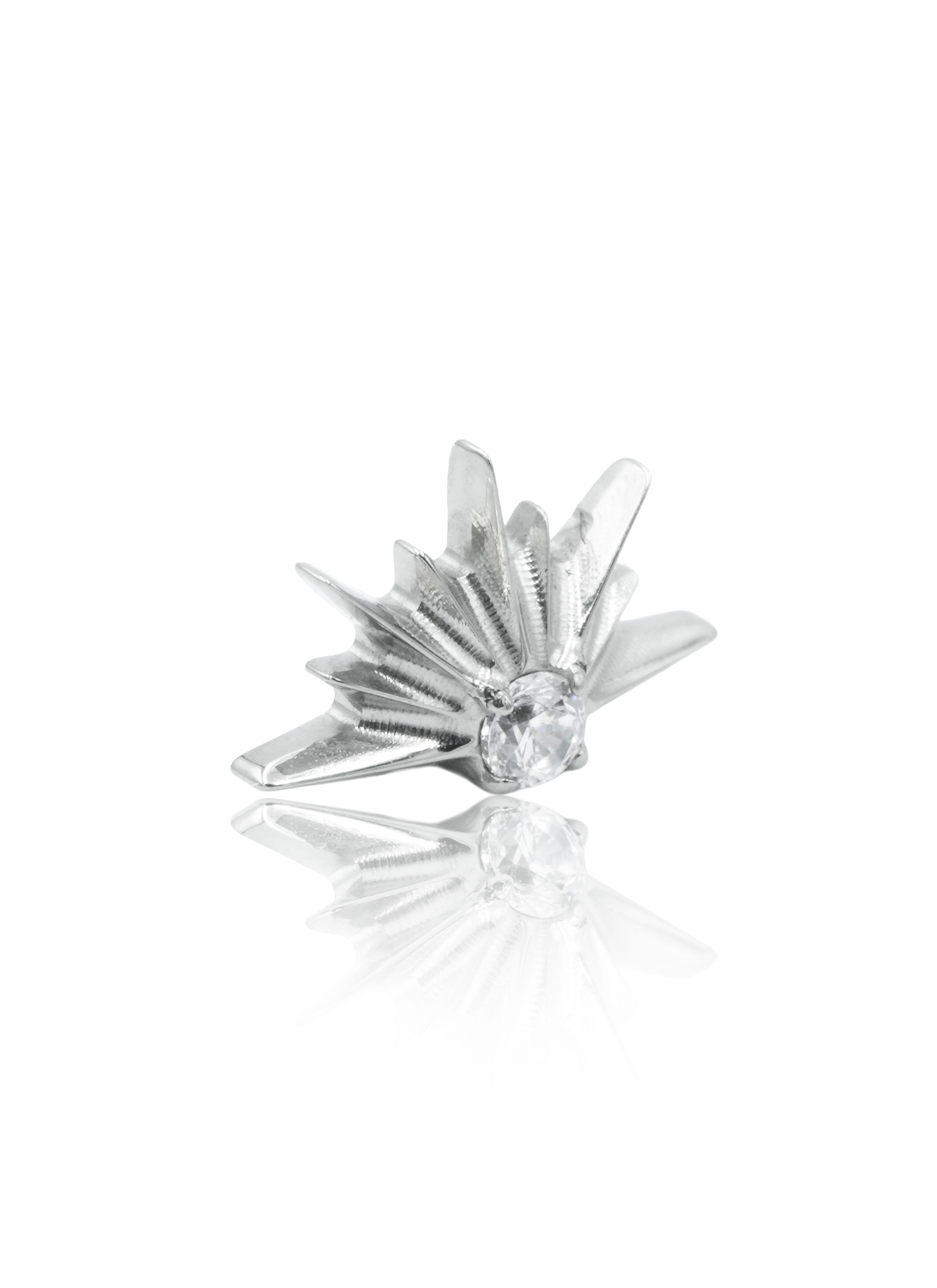 „Clear Sunset” to kolczyk, który łączy dynamiczną formę promieni słońca z elegancją przejrzystej cyrkonii. Rozchodzące się od centrum ostre, wydłużone kształty tworzą efekt rozbłysku światła, dzięki czemu kolczyk wygląda niezwykle bogato i przyciąga spojrzenia z daleka. Jasna, srebrzysta oprawa nadaje mu uniwersalności i sprawia, że idealnie pasuje do każdej stylizacji — od minimalistycznej po bardziej ozdobną.