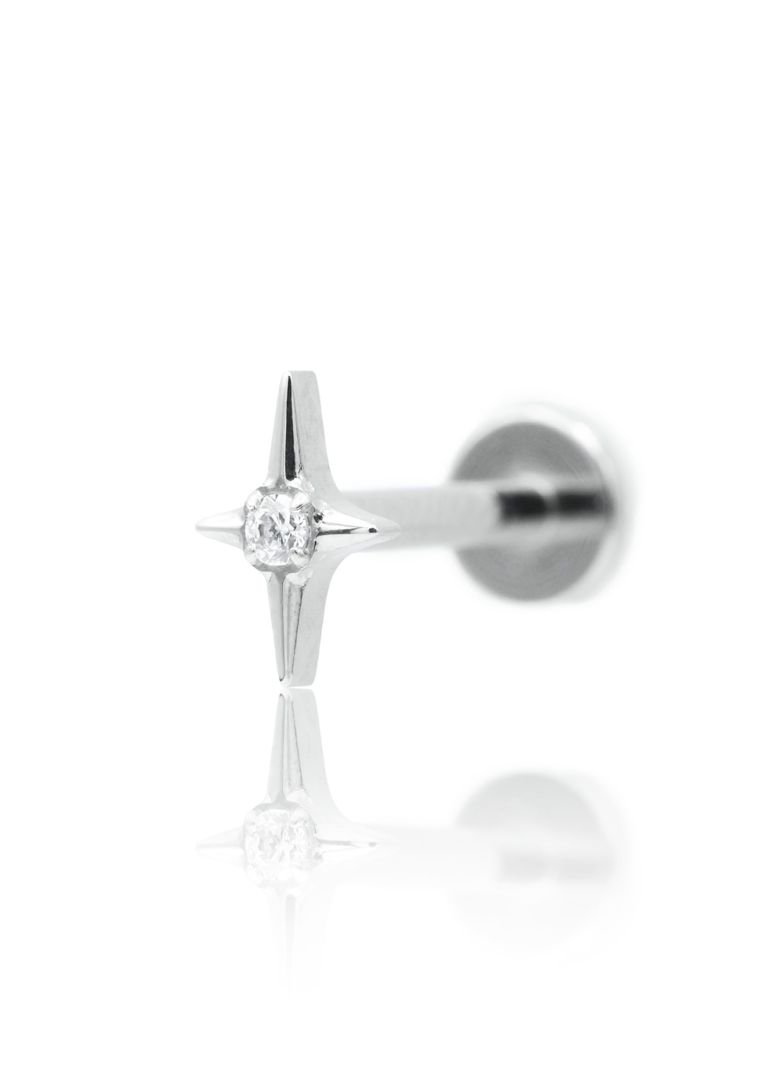 Kolczyk do ucha "Long Star" - tytanowy labret z cyrkonią