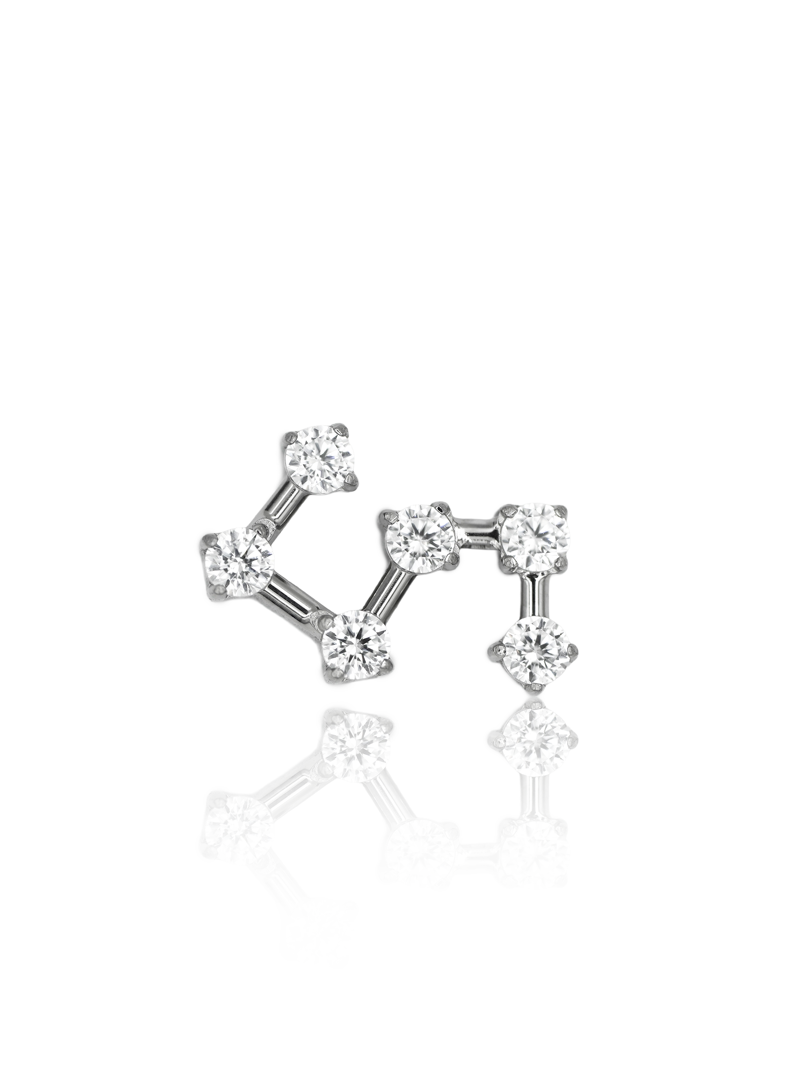 „Look UP” to kolczyk inspirowany nocnym niebem – kilka iskrzących cyrkonii połączonych subtelnymi pręcikami tworzy formę przypominającą konstelację. To idealny wybór dla osób, które kochają kosmiczne motywy, minimalizm z nutą fantazji i biżuterię, która robi delikatne, ale charakterystyczne wrażenie.