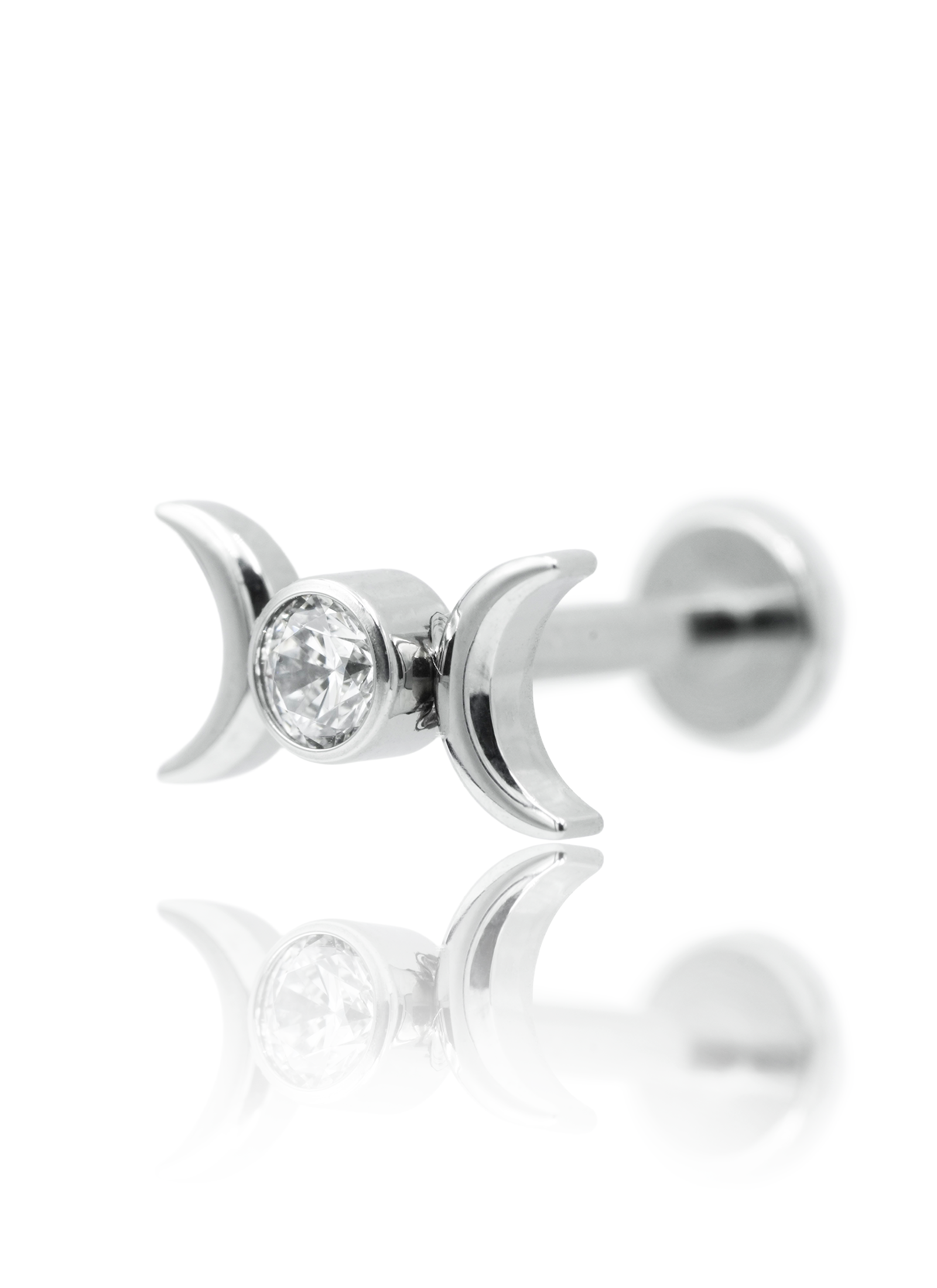 Kolczyk do ucha "Two Moons Zirconia" - tytanowy labret z cyrkonią i księżyczami