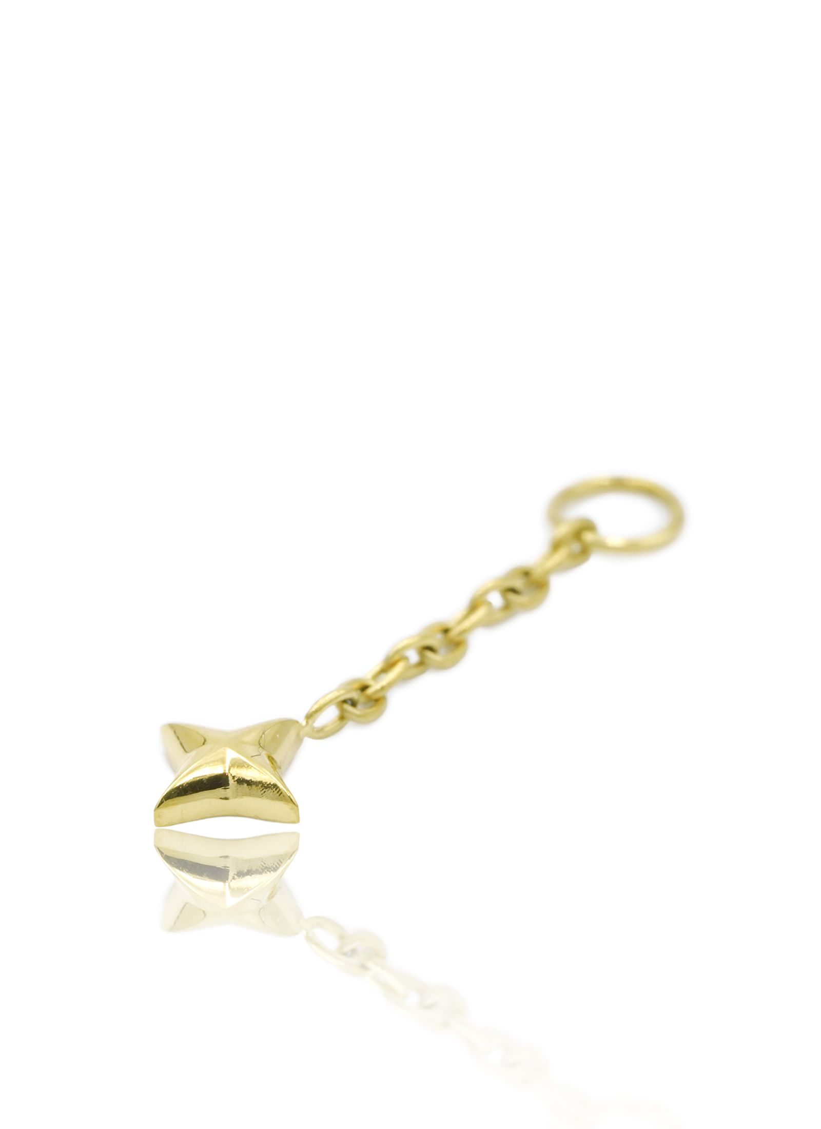 „Hanging Star” to minimalistyczna, ale niezwykle efektowna zawieszka w formie delikatnej gwiazdki na subtelnym łańcuszku. Jej gładka, lśniąca powierzchnia odbija światło przy każdym ruchu, tworząc elegancki i jednocześnie lekko kosmiczny efekt. Idealnie podkręca look każdego labreta lub kolczyka z oczkiem, dodając całości charakteru i lekkości.